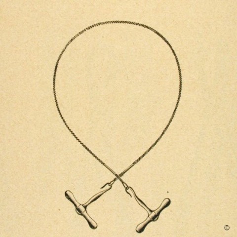 Saw consisting of a thin, twisted steel wire (approx. 35-75 cm long) to which a handle is hooked on both ends. It is used by the surgeon to cut bones and can be distinguished from the wire saw used by the lumberman.