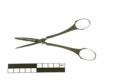With grape scissors you can easily cut grapes from a bunch at the table. They are scissors with short (approx. 3-5 cm), narrow (approx. 5 mm) blades with a blunt tip and long (approx. 10 cm) arms. The tips are blunt so that the grapes are not damaged when cut. These scissors are often decorated with grape motifs.