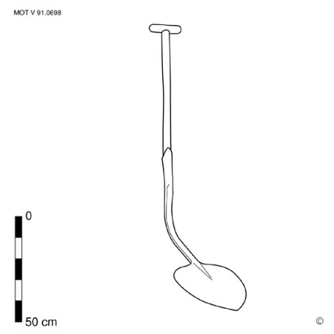 (1) P. ex. GAILEY & FENTON: 89. Selon FUSSELL: 109 l'outil présente une lame avec un bord relevé d’un côté.