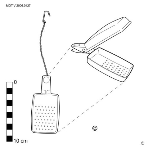 De kaken bestaan uit twee gazen zakjes of twee zeefjes uit inox, die men opent door de armen van de tang dicht te knijpen. Men kan zo makkelijk het theetangetje vullen of ledigen. De tang sluit zich automatisch wanneer men geen druk meer uitoefent op de armen of ze wordt toegehouden door middel van een ring. Indien de armen te kort zijn wordt er een kettinkje met haakje voorzien om over de rand van het kopje of de theepot te hangen.